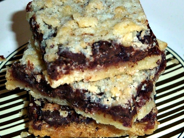 Raspberry Dark Chocolate Bars are always the hit of the party with their shortbread crust and Jam filling topped with dark chocolate chips and covered with a crumb topping. This is another family favorite. If you a family member that doesn't like chocolate, the chips can always be omitted.